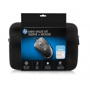 - The HP Mini Value Kit - 25.9 cm (10.2 inch) Bundle has a 1,000 dpi high-precision optical sensor mouse with three buttons and rubber scroll wheel - and you don`t need a driver The slim sleeve protects your notebook and makes it easy to transport.